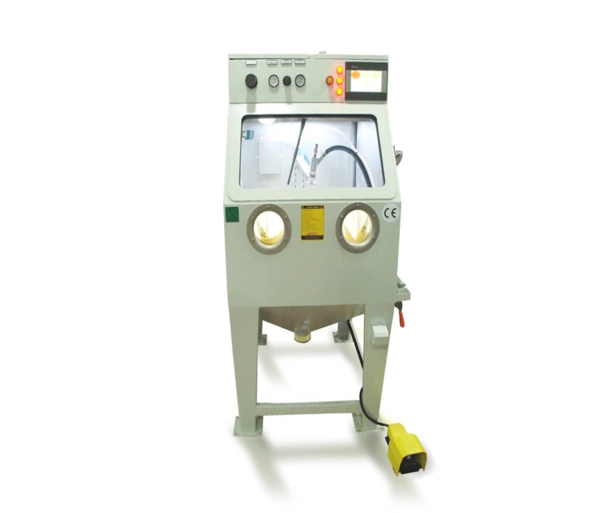 The SK 800 wet sandblasting machine is a closed-cabin wet sandblasting machine designed specifically for precision sandblasting of non-ferrous metals and non-metallic materials, offering dust-free operation. It is a patented machine.